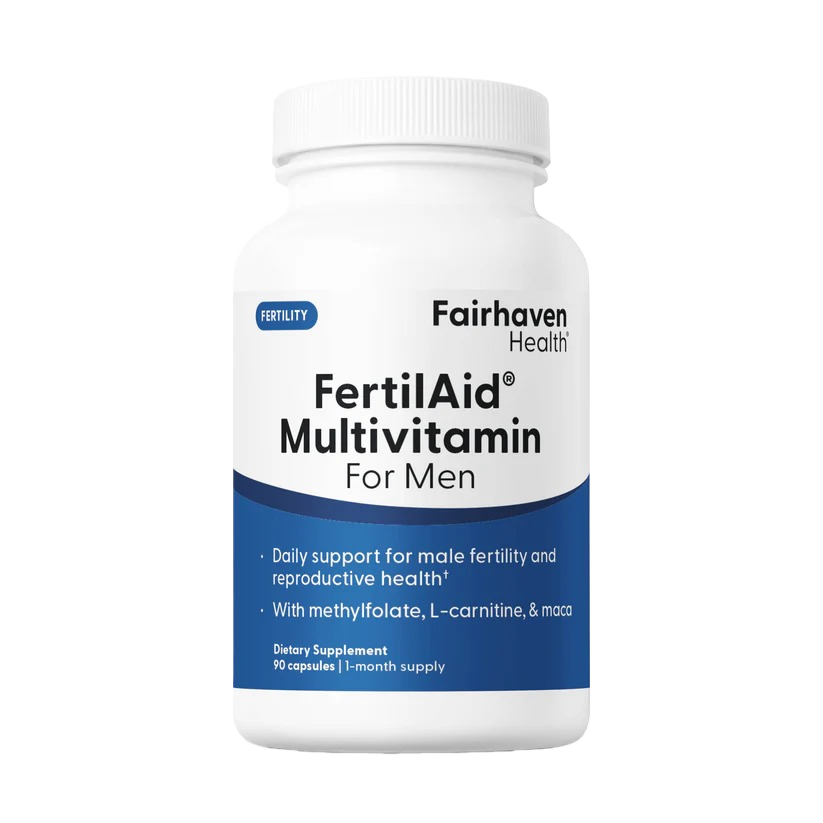 FertilAid Multivitamin For Men contains ingredients such as L-carnitine, zinc, and CoQ10 to support count, motility, and morphology.